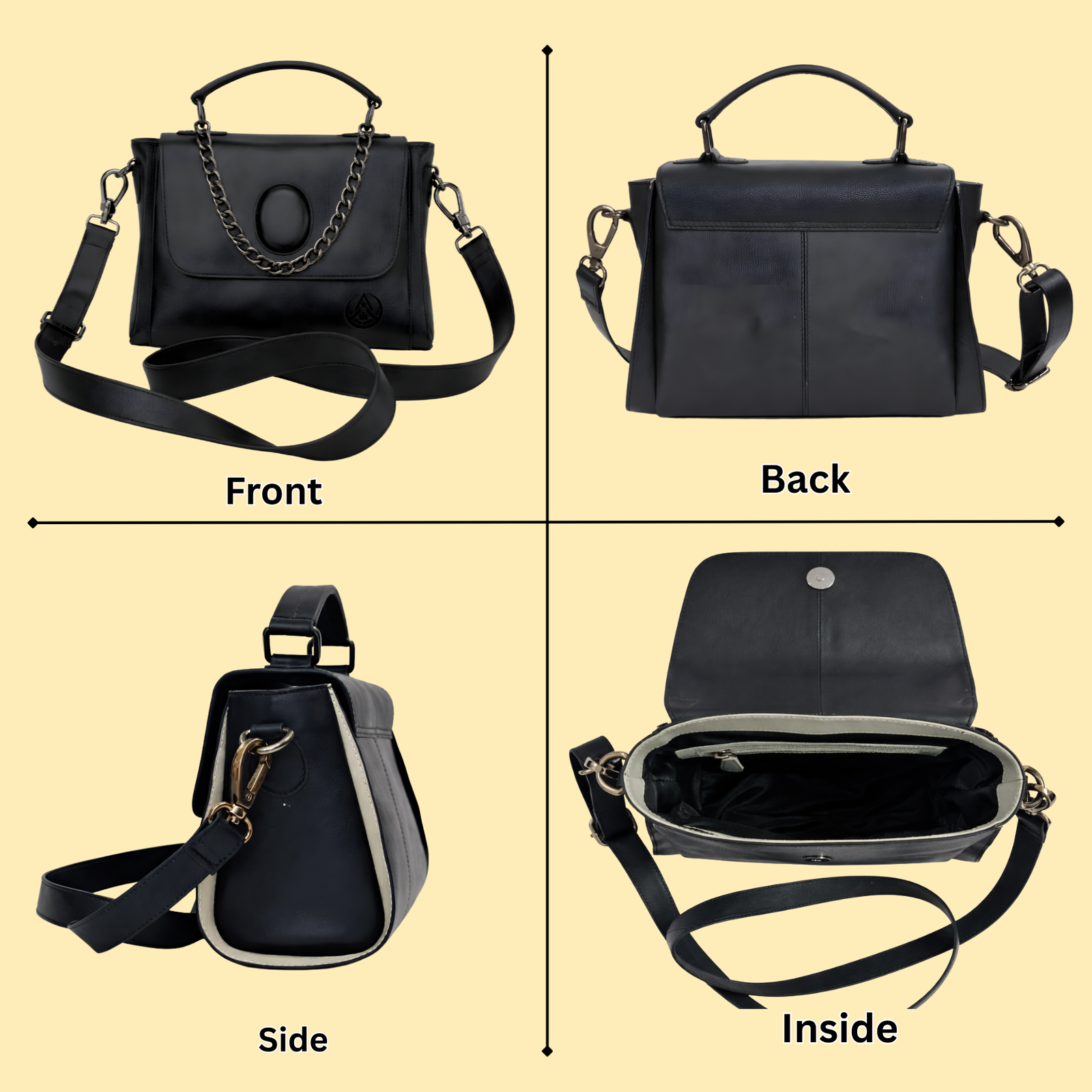 Premium Grained Leather: The exterior features a distinct pebbled texture (often called “top-grain” or “shrunken grain”), which provides a sophisticated look while offering a better grip.