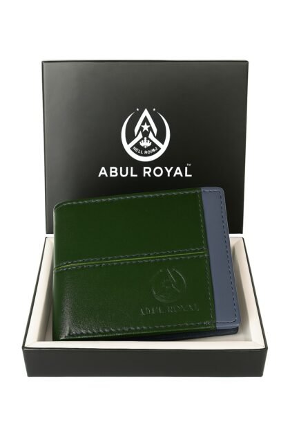 ABUL ROYAL Men’s Green & Blue Genuine Leather Bi-Fold Wallet