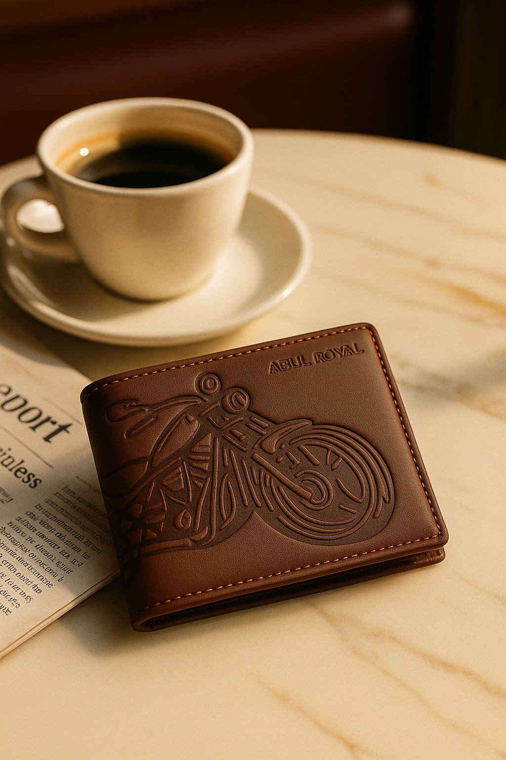 The ABUL ROYAL Premium Leather Wallet is a testament to fine craftsmanship and timeless design. Crafted from high-quality genuine leather, this wallet showcases a striking embossed motorcycle motif that appeals to those with a passion for adventure and style.