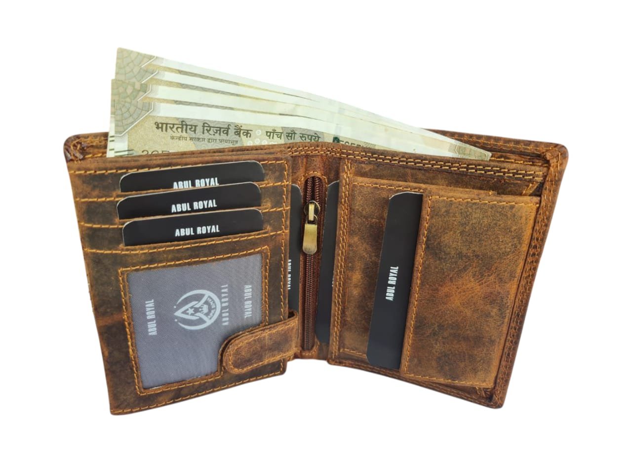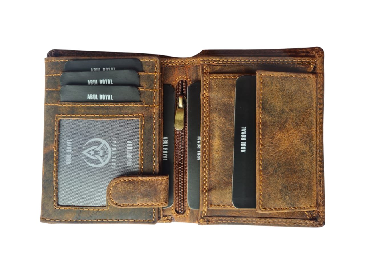 Abul Royal Men’s Genuine Leather Wallet | Vintage Brown | Multi-Card Slots with Coin Pocket & Zip Closure