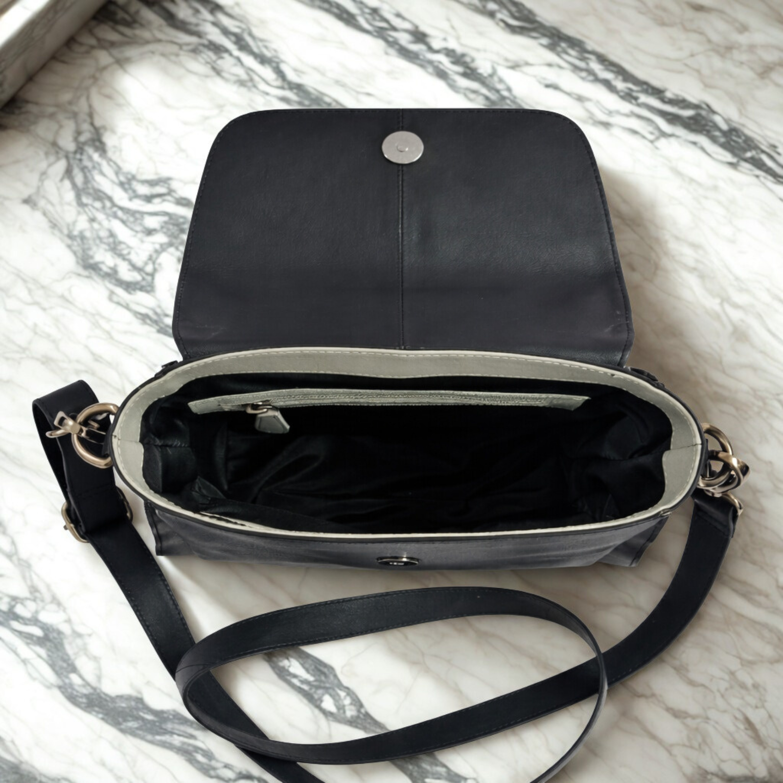 Unlike standard PU bag, this piece features robust construction using 80 GSM fusing and reinforced rubber/salfa stiffeners, ensuring it keeps its shape. The highlight of this bag is the hardware: we use only YKK Metal Pullers and Zippers, ensuring you never face snagging or breakage issues.