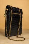 Stay stylish and organized with this luxury women’s crossbody mobile bag. Designed with a black crocodile-textured finish and an elegant gold-tone chain strap, this bag is the perfect blend of fashion and functionality.